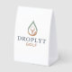A stylish table card featuring the Droplyt Golf Signature Logo.