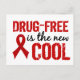 Stand up for Drug Abuse Awareness with Drug-Free Is The New Cool t-shirts and gifts featuring grunge text and a red ribbon in the background.
