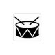 Icon-style drawing of drum and drumsticks.