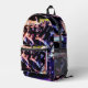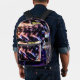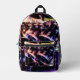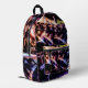 The artwork on this Backpack is an original photograph by ZoeSPEAK of a drum set. The shiny black drums with their silvery rims reflect the colours of the lights in the studio, blues, reds and greens. Cymbals above the drums wait to be struck.