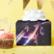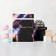 The artwork on this Wrapping Paper is an original photograph of a drum set. The shiny black drums with their silvery rims reflect the colours of the lights in the studio, blues, reds and greens. Cymbals above the drums wait to be struck.