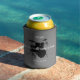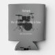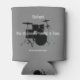 A graphic black illustration of drums with custom name and text 'the drummer needs a beer'