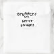These humourous round vinyl stickers make a great gift for that confident, show-off drummer you know. Each sticker reads, "Drummers are better bangers." Depends on what you're banging with…on…Don't like the white colour? Change the background colour by clicking on "customise," then "colours>background" and choose a colour from the array. If you don't like your choice, hit "revert" or continue until you do.