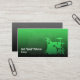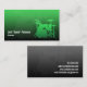 The silhouette of a drum kit appears in the bottom right corner over a green and black gradient background. In the far background, the shadow of the same drum kit appears faintly. This design makes the perfect name card for drummers, percussionists or those involved in the music industry.