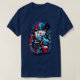 I give wanted to give this a 4 instead of a 5 because these Basic DARK T0shirts run unexpectedly SLIM or Narrow. Which is great if you do not have a potbelly, but I have a paunch. It isn't the shirt's fault that I've got a beer belly. The design and shirt itself is a quality cotton shirt. The color is more of a deep purple, but still a very pretty color. The Basic DARK T-shirts run a bit SLIMMER than the Basic Ts. The neck is a fraction narrower (or seems to be narrower) also. I'm a paunchy middle-aged woman and my neck is 12 inches (31cm) thick and the neckline fell about the same as in the photo of the man, and I had the desire to tug it a bit. So if you're a thick necked man or like loose shirts, be aware these are slimmer shirts. Once I get rid of my lockdown paunch it'll look great. The shirt washed well in cold water with no apparent bleeding. We don't have a dryer, so it hung dry. Did not shrink. Love the colors and the design. The design looks smaller on my shirt than it does on the model on-line. But still, it looks good on the shirt. The printing looks as it does on the model, just the size seems fractionally smaller. Washed garment in cold water, hung dry and design appeared unaffected.