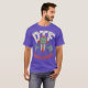 I give wanted to give this a 4 instead of a 5 because these Basic DARK T0shirts run unexpectedly SLIM or Narrow. Which is great if you do not have a potbelly, but I have a paunch. It isn't the shirt's fault that I've got a beer belly. The design and shirt itself is a quality cotton shirt. The color is more of a deep purple, but still a very pretty color. The Basic DARK T-shirts run a bit SLIMMER than the Basic Ts. The neck is a fraction narrower (or seems to be narrower) also. I'm a paunchy middle-aged woman and my neck is 12 inches (31cm) thick and the neckline fell about the same as in the photo of the man, and I had the desire to tug it a bit. So if you're a thick necked man or like loose shirts, be aware these are slimmer shirts. Once I get rid of my lockdown paunch it'll look great. The shirt washed well in cold water with no apparent bleeding. We don't have a dryer, so it hung dry. Did not shrink. Love the colors and the design. The design looks smaller on my shirt than it does on the model on-line. But still, it looks good on the shirt. The printing looks as it does on the model, just the size seems fractionally smaller. Washed garment in cold water, hung dry and design appeared unaffected.