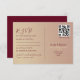 This elegant rose gold and burgundy dual-function wedding RSVP card offers a romantic yet modern design, complete with space for guest names and menu choices. Guests can quickly RSVP using the QR code or opt for the traditional approach by mailing it back as a stamped postcard. Perfect for a stylish wedding that seamlessly blends convenience with classic sophistication.