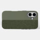 A case that means business—and beauty. This iPhone 16 cover features a vertical split between deep matte moss green and a rich speckled texture, offering a grounding visual balance for any event, brand, or celebration. Designed to feel modern yet earthy, this piece adds a quiet sophistication to your tech essentials.