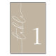 Our simple and modern table number design is part of our Stork collection; featuring golden brown hues and sans serif and handwritten cursive typography.