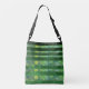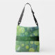 Add a touch of elegance and whimsy to your accessories with this unique crossbody bag. On the front, a charming watercolor ink pattern of round circles in shades of green and blue meets a velvet-like green stripe featuring your family name or monogram in a light green font. Flip it over to find the same luxurious green velvet background with stripes of the watercolor design. It's two styles in one—a delightful blend of sophistication and artistry, all in a single bag