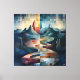 Dual-Tone Abstract Landscape with River & Mountain Canvas Print