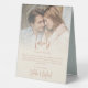This table tent sign is the perfect size for our tables and easy to read. I also like the material it is made with and no worries about it falling or sliding. Just perfect! Everything about this card is perfect. I like that it says what we want on the front and on the back we were able to personalize a message for our guests.
