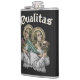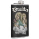 At the centred mirrored saint-figures stands, their serene expressions betrayed by what they bear: one offers a bleeding heart, the other a decaying skull. Framed by golden halos and draped in faded white robes, saints of both grace and grief. The Latin Title "Dualitas" anchors the design, reminder, that everything holy carry their shadows.