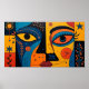 Duality in Bloom" is a captivating modern abstract painting that explores the interplay of identity, emotion, and nature through a bold, vibrant colour palette and a symmetrical dual-face composition. Inspired by cubist and surrealist movements, this artwork features a split visage — one half rendered in deep indigo and cool teal tones, symbolising introspection and mystery; the other in radiant yellows and warm oranges, evoking vitality, extroversion, and solar energy.