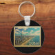 Dubai design in Vintage Travel style featuring a coastal scene with the beach and skyline of Dubai.