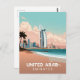 Capture the iconic elegance of Dubai with this vintage-style travel postcard. Featuring the stunning sail-shaped Burj Al Arab hotel rising above a pristine beach, this design perfectly blends modern architecture with a retro travel poster aesthetic. The warm, inviting colors, including soft blues, pinks, and sandy beige, evoke the serene beauty of the United Arab Emirates coastline at sunset. This piece is perfect for sharing your travel memories, sending a unique greeting, or collecting as a piece of stylish wall art. A must-have for fans of stylish cityscapes, resort architecture, and retro travel art.