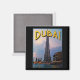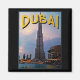 The exotic city of Dubai shines gloriously in this deco inspired design. A tall skyscraper and more skyline against a dramatic sky and water below.