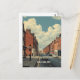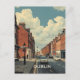 A retro postcard of Dublin, Ireland captures the city's vibrant streets, classic architecture, and timeless atmosphere in warm, nostalgic hues.