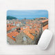 Painting of red rooftops and blue sea from Dubrovnik city wall in Dubrovnik, Croatia. View from above of old town center.