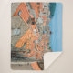 Painting of red rooftops and blue sea from Dubrovnik city wall in Dubrovnik, Croatia. View from above of old town center.