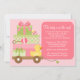 This cute Baby Shower invitation features pink and green baby gifts and a rubber ducky in a wagon. This modern and fun baby shower invitation is perfect for any mum to be.