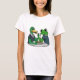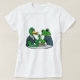 A cartoon-style t-shirt, with a frog and a comic duck doing a tug-of-war while eating spaghetti ! 🍝