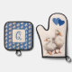 Duck Love Blue Pattern Hearts Initial Oven Mitt & Pot Holder Set