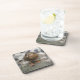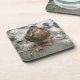 This awesome cork coaster features a photograph of a beautiful brown duck with a bright orange beak. The duck is standing on a wall overlooking a lake and looks like it is deep in thought.