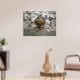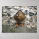 This poster features a photograph of a beautiful brown duck with a bright orange beak. The duck is standing on a wall overlooking a lake and looks like it is deep in thought.