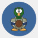 Round sticker shown with a cute cartoon duck. Customise this item or buy as is.