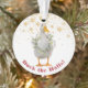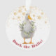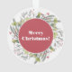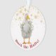 One side of this whimsical ornament has a white pekin duck wearing a watercolor greenery and berry wreath. The other side features a pretty watercolor wreath with the message "Merry Christmas". All copy may be changed and personalised as you like using the customise tool.