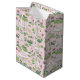 Make your gifts even more special with this hand-drawn illustration of cute spring white ducks with a waterlily pads pattern gift bag in pink.