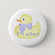 A yellow duck with a blue ribbon and blue text that reads "It's a Boy!" on baby boy buttons, magnets, and more.