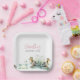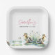 These disposable duck baby shower paper plates feature a bottom boarder watercolor ducklings and woodsy botanicals. Mum's name is set in pink typography. Use the template fields to add your custom text. An adorable choice for girl duckling shower ideas and baby shower decorations. To see more spring or summer baby shower paper plates and napkins like this visit www.zazzle.com/dotellabelle
