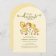 A cute baby shower invitation featuring "Two sweet little ducklings are on their way" in soft delicate green modern typography and stylish script, plus two sweet ducklings.