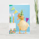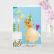 Here's a cute duckling wearing a party hat and standing next to a birthday cake. Inside reads: Here's to another year of happiness and good health. Happy Birthday! - Utilize our text our update as you see fit.
