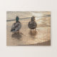Enjoy hours of fun with this adorable puzzle featuring a photograph of a couple of ducks on the beach at sunset. Perfect for any wildlife lover!