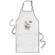 Long bib apron with two white ducks design. Customise blue text beneath the design. Little blue hearts are also part of the image on aprons that come in three styles / sizes and colours. They have pockets and an adjustable neck strap.