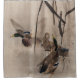 A beautiful antique Japanese painting of Mallard ducks in the water is reproduced on this shower curtain. A male and a female are swimming, while a second male has his wings spread as he makes his run for take off.
