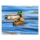 Two Mallards swim peacefully across a lake on a bright Fall day.