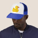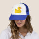 Simple graphic illustration of a cute cartoon yellow duck in blue water on hat. This duck is Image available on various gifts and products. Customise and choose your own duck background colour or add text if you need to.