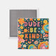 This colorful Inspirivity “Dude, Be Kind” magnet features cheerful florals, rainbows, and uplifting Inspirivity art designed to brighten everyday spaces. Perfect for refrigerators, lockers, filing cabinets, classroom boards, or office spaces, it adds a pop of positivity wherever it’s placed.