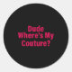 Dude Where's My Couture Sarcastic Funny Saying Wom Classic Round Sticker