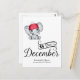 Adorable baby elephant wearing red knit cap with white pom pom, "Due in December" typography, and template for special message announcing pregnancy.