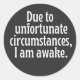 Due To Unfortunate Circumstances I Am Awake Classic Round Sticker