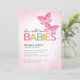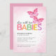 Due with Two Pink Butterflies Twins Baby Shower Invitation