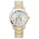 Two intricate silver antique pistols crossed. They are on a silver background with twelve black Roman Numerals
