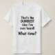 This funny T-shirt reads: That's the DUMBEST idea I've ever heard! What time? Do you know someone who's always getting into trouble? Then this is the perfect gift for them. You're sure to get a laugh wearing this humourous T-shirt.