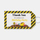 Dump Truck Digger Gift Bag Tag. All of the words can be changed to your own details and matching Thank You Card, Paper Plates, Paper Cups, Paper Napkins, Stickers and Button/Badge and more are also available in my store to create a lovely party set. Everything you need for that special day.