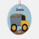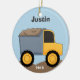 This Customisable Dump Truck Christmas Ornament can be personalised with your Child's Name and the year. It makes a great stocking stuffer or Christmas Gift. Features a bright yellow dump truck.